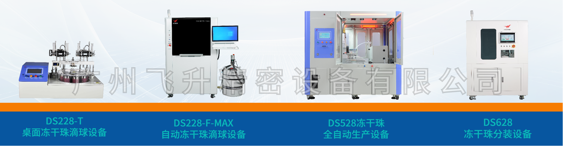 2, 廣州飛(fēi)升精密設備有限公司擁有多款液氮凍幹珠滴球點液(yè)及分裝設備,產品涵蓋試(shì)驗室研發/小(xiǎo)批量生產及大批量(liàng)自動量產。尤其是2021年2季度推出最新的DS528全自動液氮凍幹珠點小球液係統,滿足全球市場對液氮凍幹珠點小球大批量生產,減少人(rén)工成本的需求。