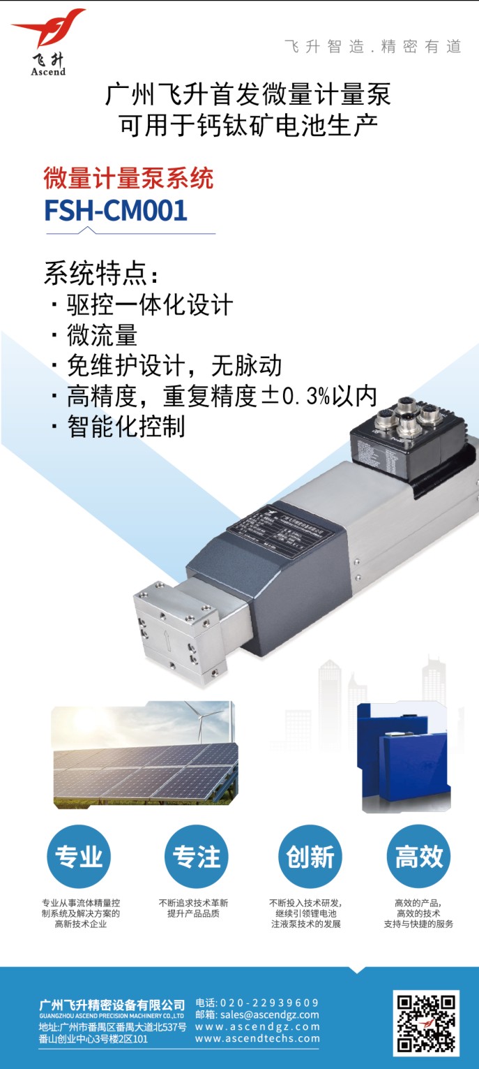 廣州飛升首發微量計量(liàng)泵可用於鈣鈦礦電(diàn)池生產